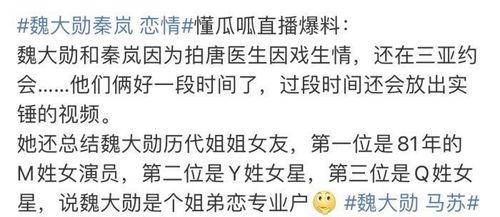 最近娱乐圈可是炸开了锅!听说魏大勋和秦岚的私密视频被圈内人爆出来了,这可真是让人意想不到啊!咱们就来聊聊这个话题,看看这背后到底是怎么回事。